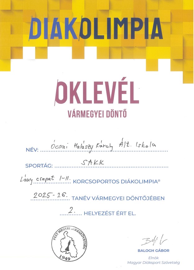 Czibula Léda 2.a osztályos tanuló a PEST VÁRMEGYEI SAKK DIÁKOLIMPIÁN 3. helyezést ért el. Irány az országos verseny!