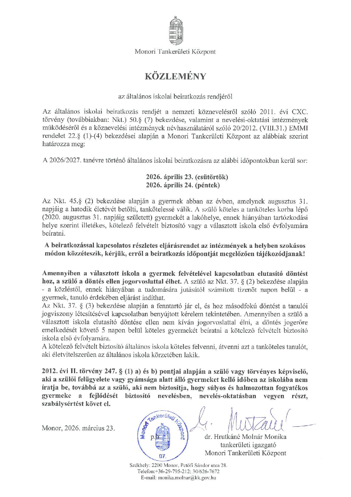 A beiratkozás alkalmával mindkét törvényes képviselőnek jelen kell lennie, de ha csak az egyik törvényes képviselő tud a beiratkozás során megjelenni a 1. „Meghatalmazás beiratkozáshoz” nyilatkozatot mindenképpen be kell mutatniuk (a portán is átvehető)! (Okmányirodában való ügyintézéshez lentebb található a hozzájáruló nyilatkozat, ez csak a beiratkozáshoz használható!)